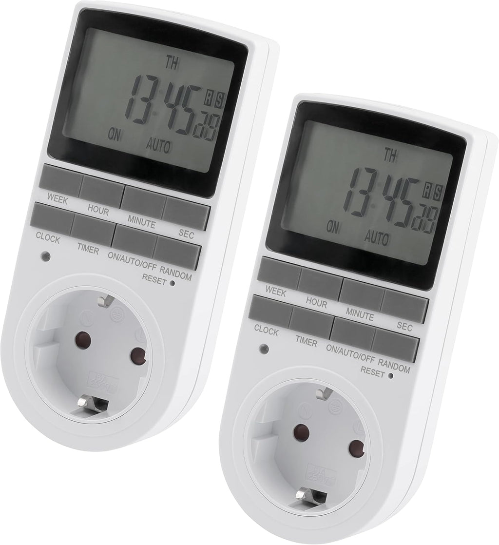 2er-Set Digitale Zeitschaltuhr | WZ-10 | 10 konfigurierbare Programme, 24 Std. Timer, 3.680W, Urlaubs/Zufallsfunktion