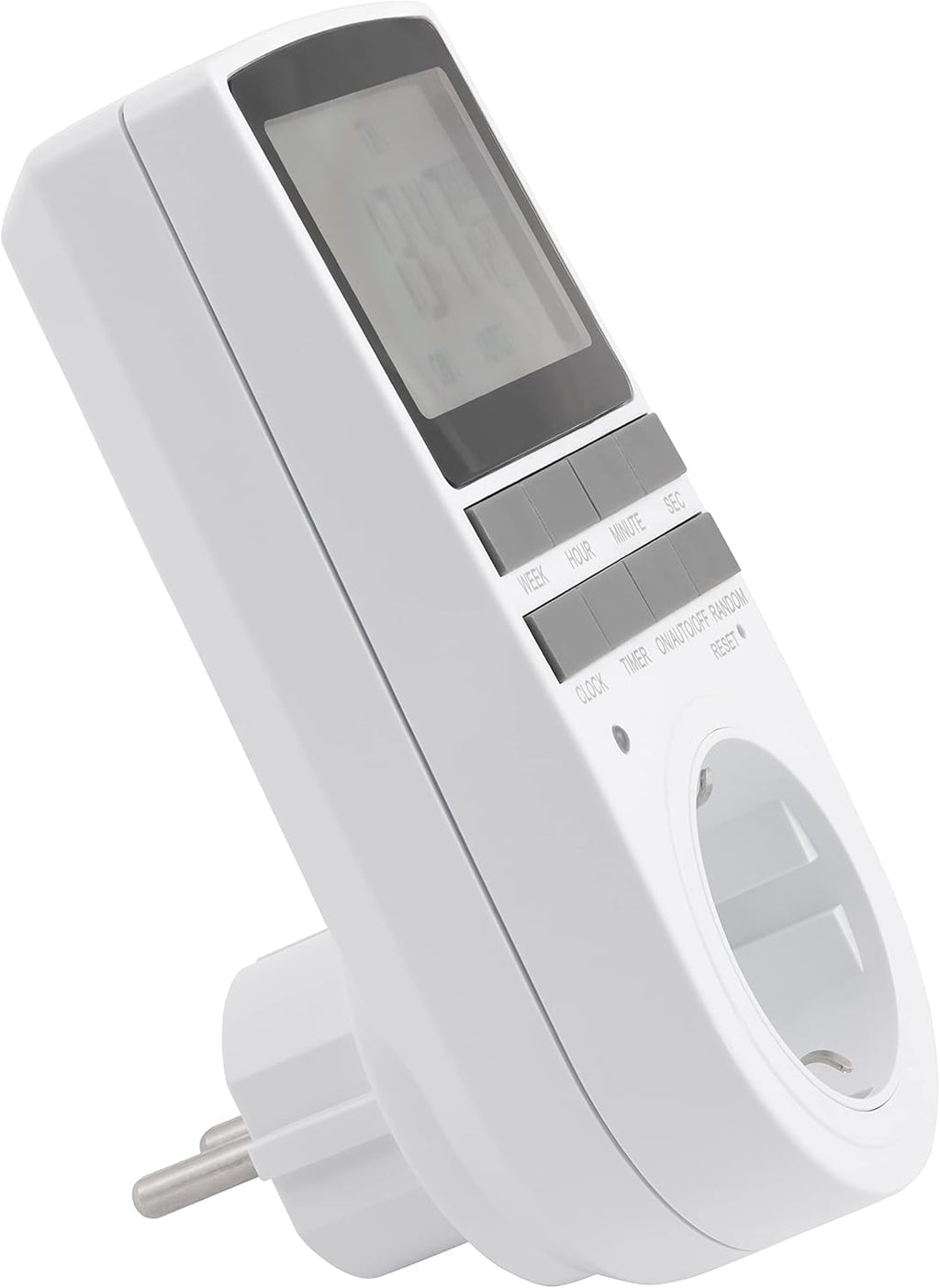 • Tasten: Week, Hour, Minute, RES/RCL, Clock, Timer, ON/AUTO/OFF, Random + RESET