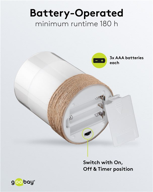 • mit Timerfunktion und 3D-Flammenkegel, batteriebetrieben, warmweiß (2700 K)