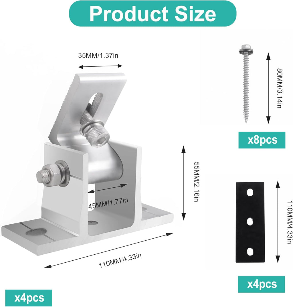 • Einfach zu Installieren - Aluminium-Montagehalterungen werden mit vorgebohrten Löchern und passenden Befestigungsschrauben geliefert. Das verstellbare Montagesystem erleichtert die Montage oder Demontage auf geneigten Dächern. Ideal für unregelmäßige Oberflächen. Die Installation ist schnell und einfach, was Ihnen viel Zeit spart