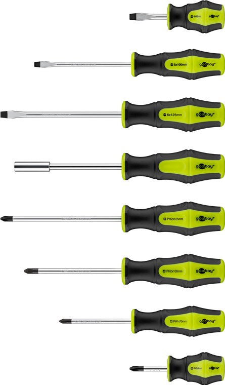 • Größe und Form sind zur besseren Orientierung auf den einzelnen Schraubenziehern vermerkt
