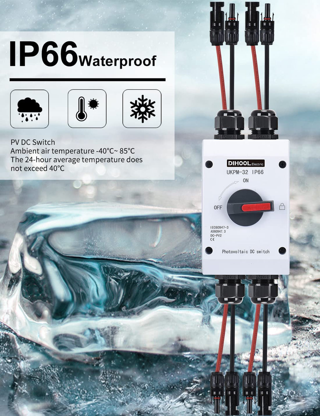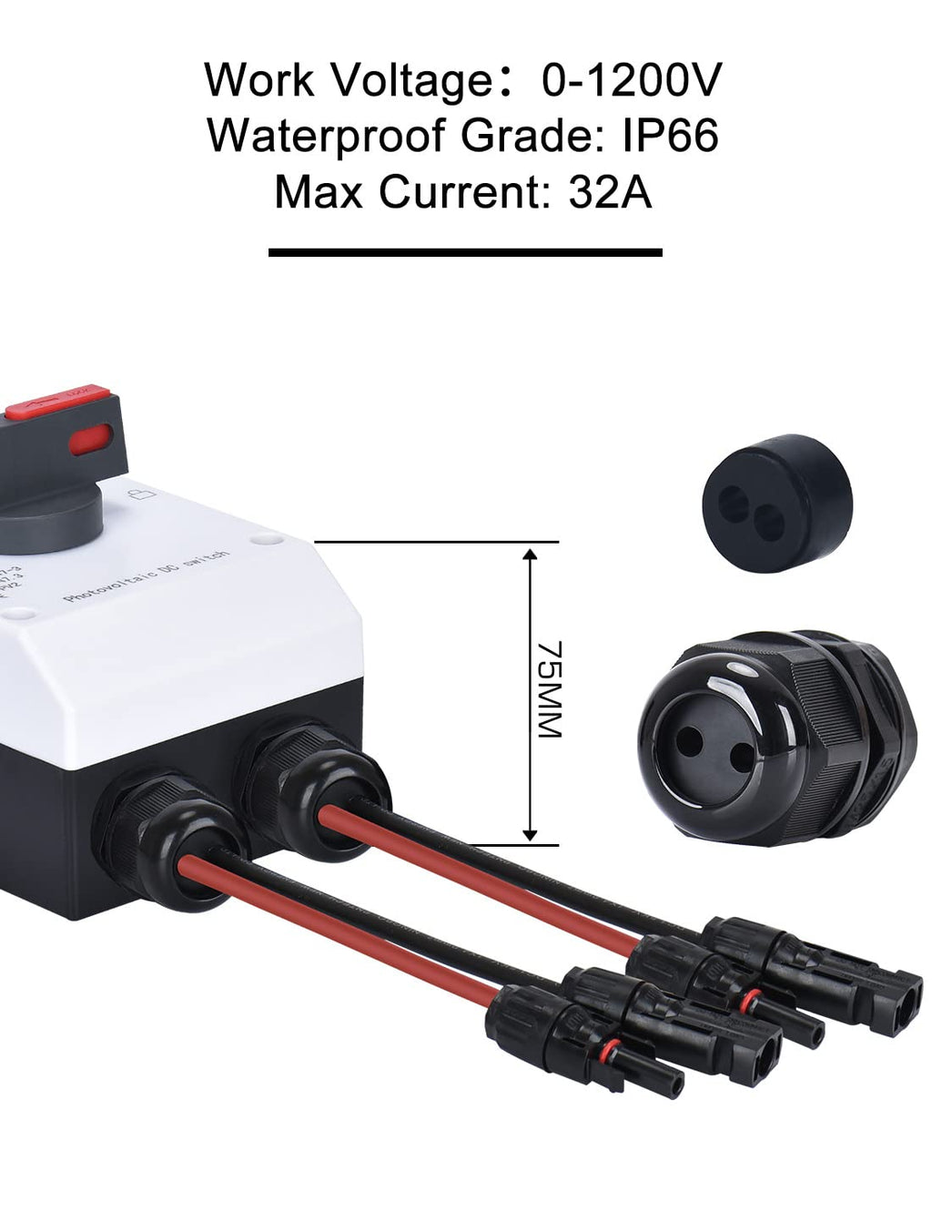 DC Trennschalter 2 Strings PV Anlage mit Generatoranschlusskasten Sicherungsautomat 32A IP66 Solar Trennschalter Anschlusskasten für Photovoltaik