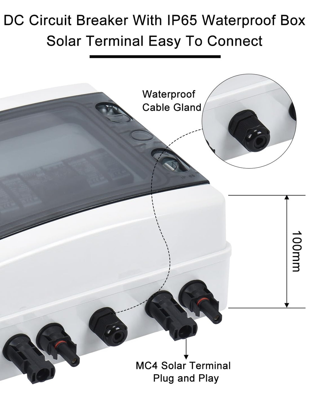 - TECHNISCHE DATEN – Austattung: 2 Strings DC1000V: 1x IP65 Wasserdicht Gehäuse PC+ABS Spezielle Materialien für den Außenbereich; 2x Überspannungsschutz DC 1000V 2P 20kA /40 kA Typ 2; 2x pv sicherungsautomat 2 Polig DC1000V 40A