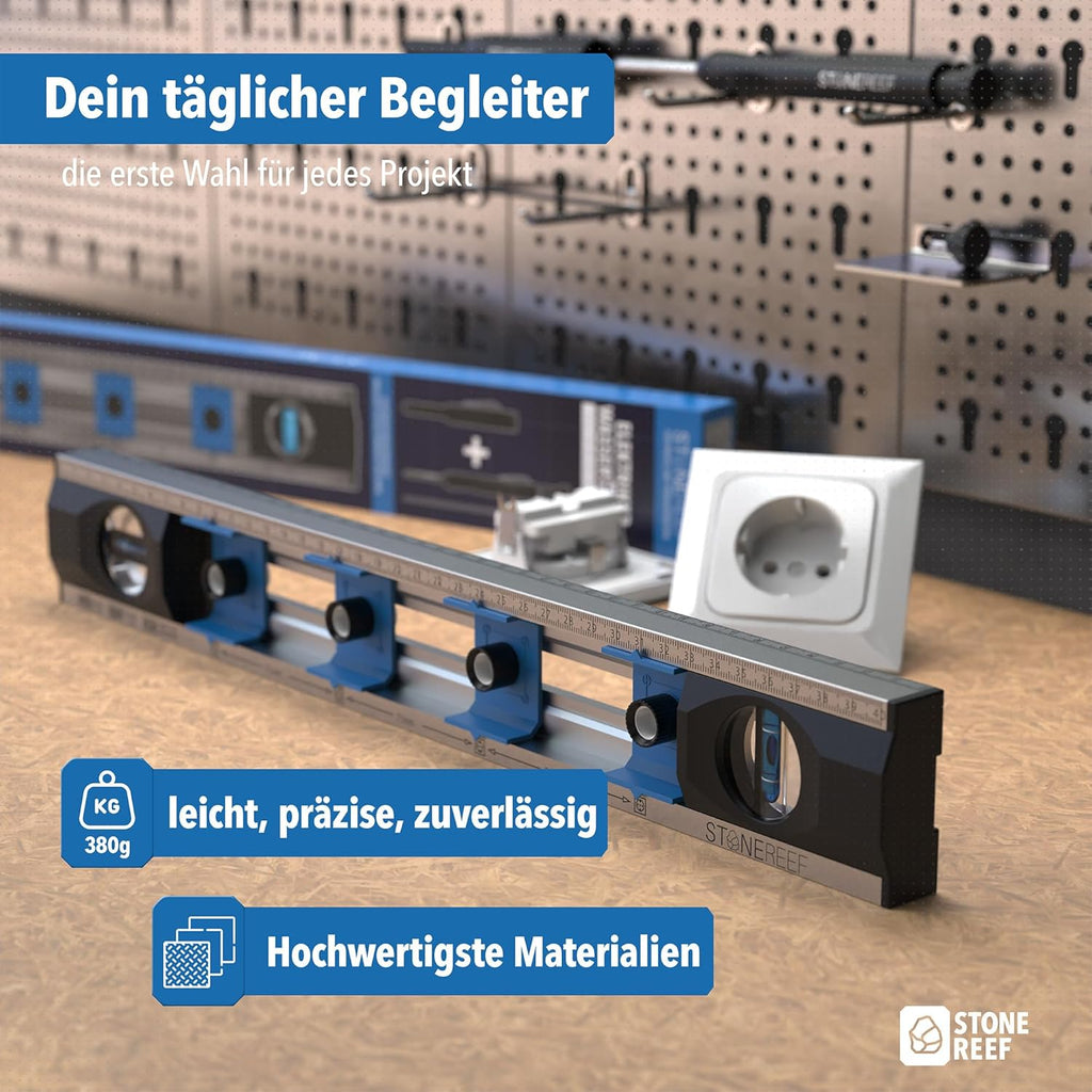 Elektriker Wasserwaage 40 cm – Präzisions-Wasserwaage für Heimwerker mit verschiebbaren Bohrlöchern und Maßskalen – Ideal für Steckdoseninstallation und Renovierungsarbeiten