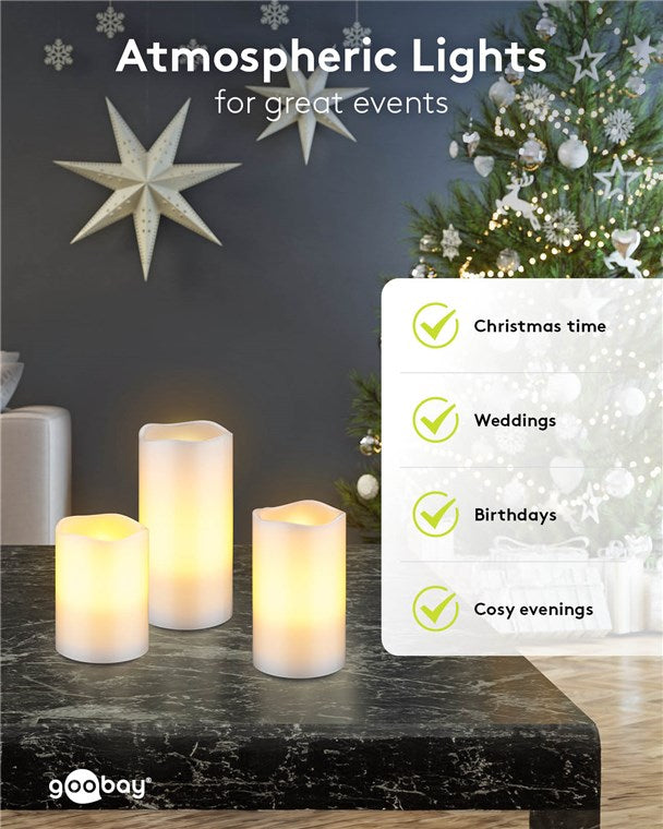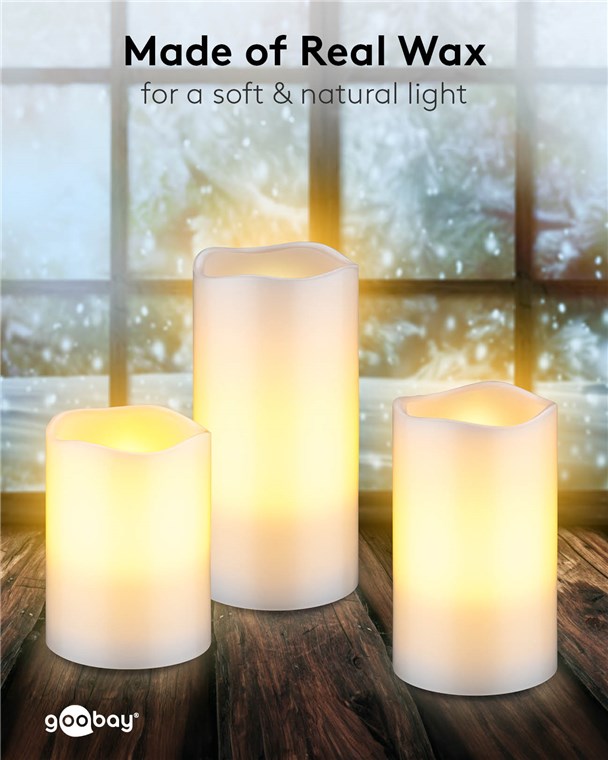 flammenlose Echtwachs LED-Kerzen 3er-Set mit realistischen Flammen, mit 10-Tasten Fernbedienung mit 2/4/6/8- Stunden Timer