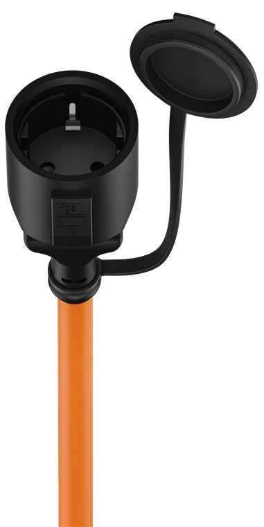 • Die orange Signalfarbe des Stromkabels sorgt für erhöhte Sichtbarkeit und erfüllt die Sicherheitsstandards auf internationalen Campingplätzen
