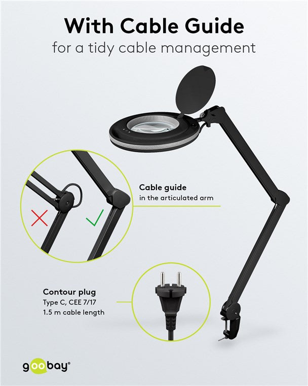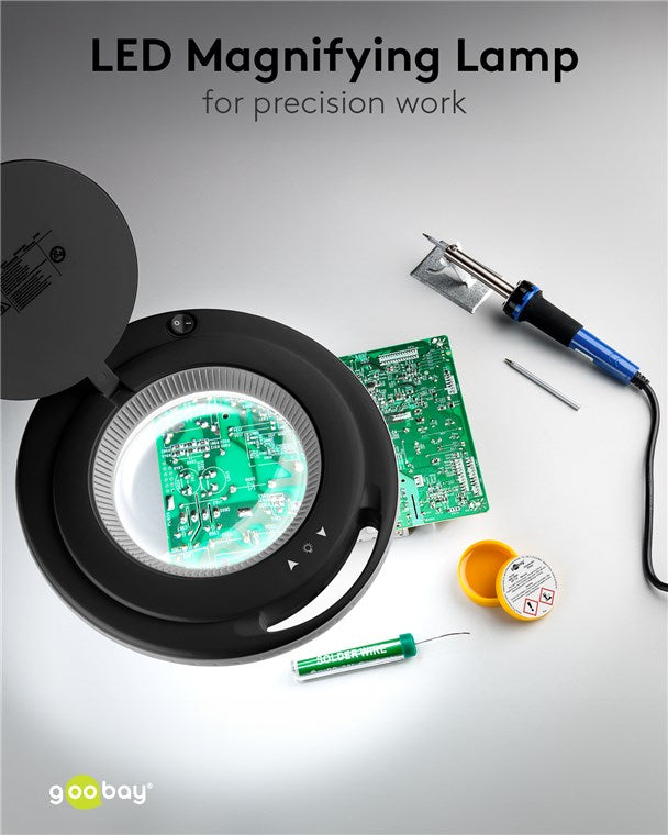 goobay LED Lupenleuchte mit Klemme / 9 W Leistungsaufnahme / 127 mm Kristall-Glaslinse/Farbtemperatur 6400 K / 1.75x Vergrößerung / Lichtstrom 83-730 Lumen / Schwarz