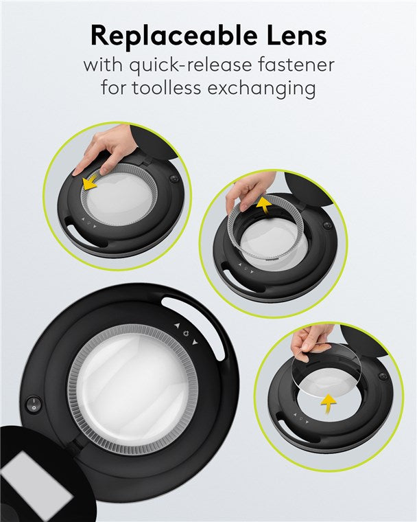 • Lupenkopf ist um bis zu 90° neigbar und 360° schwenkbar, ideal geeignet als Tischlupe, Schreibtisch-, Zeichen- oder Leselampe.
