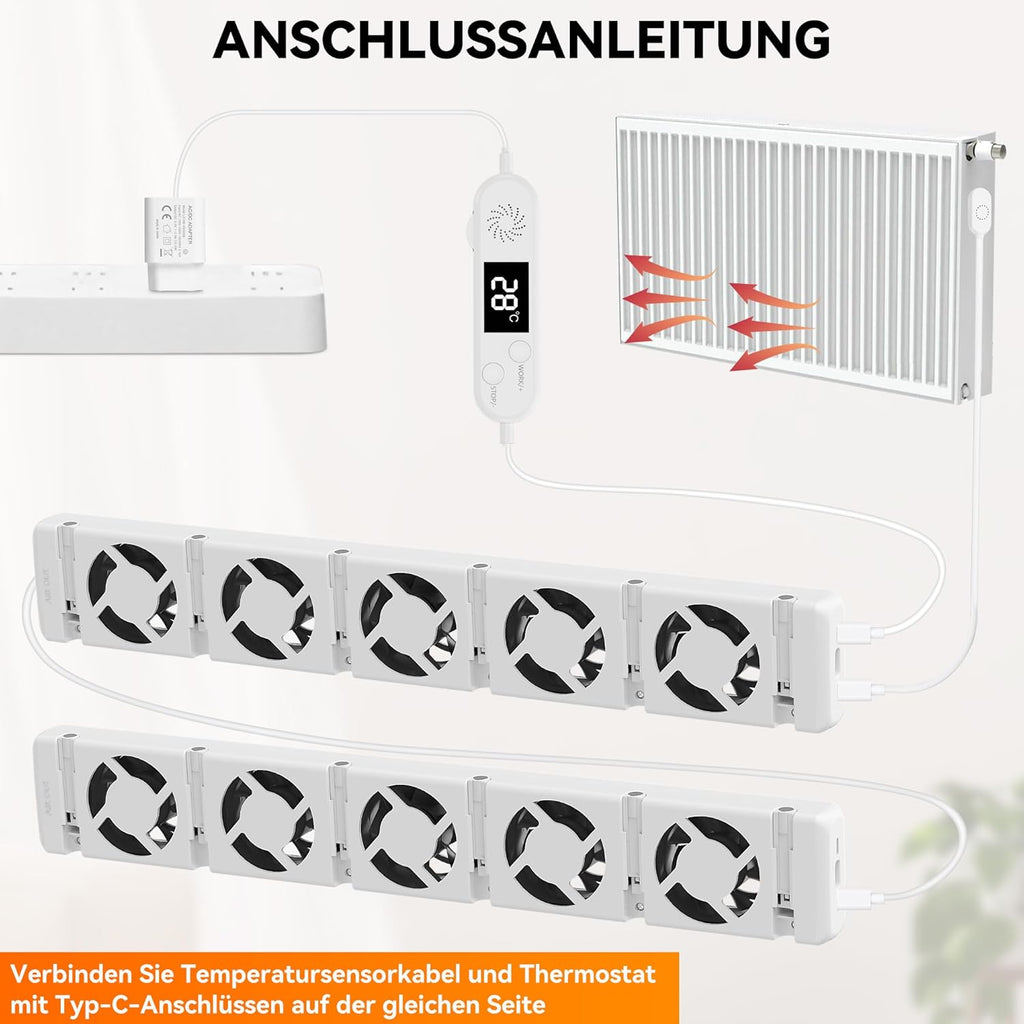 Heizkörper Ventilator 5.0 Heizungsventilator, Smart Heizkörperverstärker Einstellbarer Geschwindigkeit mit Thermostaten, Heizungslüfter Lauf Ruhig Sparen von Energie & Heizkosten (Duo Set)