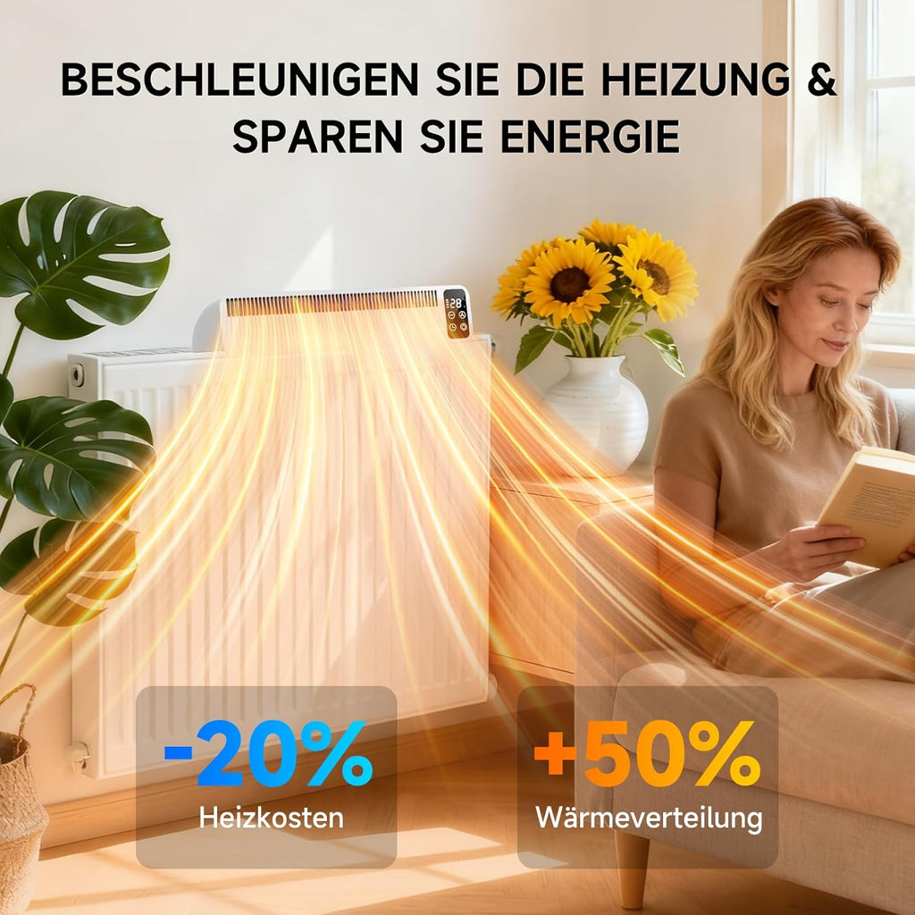 • Dieser energieeffiziente Heizkörperlüfter maximiert die Heizleistung, indem er die Wärme in jede Ecke des Raumes leitet, anstatt an die Decke. Er verbessert die Wärmekonvektion und -verteilung, erhöht die Heizleistung und verdoppelt die Heizleistung. Sparen Sie bis zu 25 % Energiekosten.