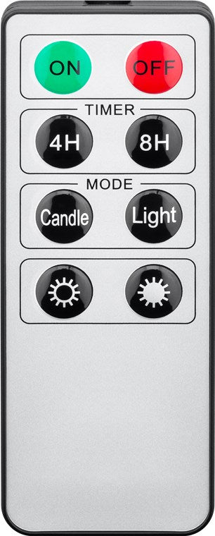 • Kerzen mit Batterie betrieben: je 1x AAA (nicht enthalten), Fernbedienung: 1x CR2025 (im Lieferumfang enthalten)
