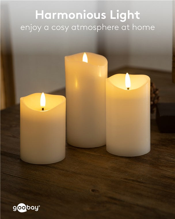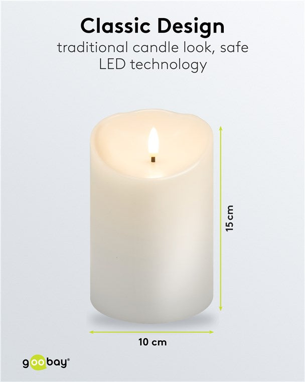 • Stilvolle Stumpenkerze mit Echtwachsmantel für warmen Kerzenschein mit natürlich wirkender, flackernder Flamme – vollkommen elektrisch und vollkommen sicher