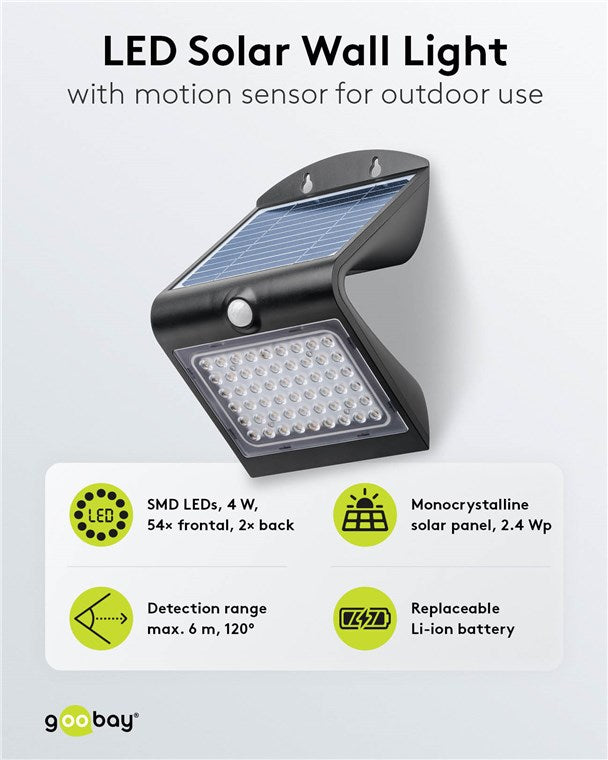 LED-Solar-Wandleuchte mit Bewegungsmelder, 4 W, schwarz