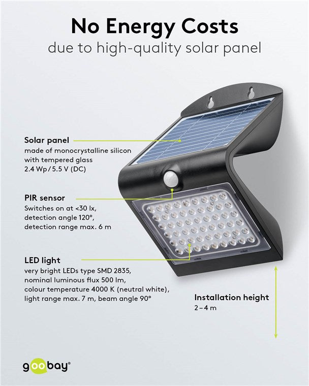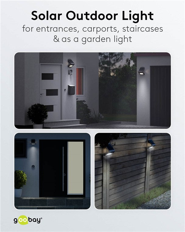 Unsere LED-Solarleuchten für den Außenbereich verursachen keine Stromkosten und sind äußerst langlebig. Hochwertige Solarpanele, stabile Gehäuse und eine einfache Montage zeichnen unsere Solar-Leuchten für Garten und Balkon aus. Goobay bringt Licht ins Dunkel. Einfach. Alles. Passend!