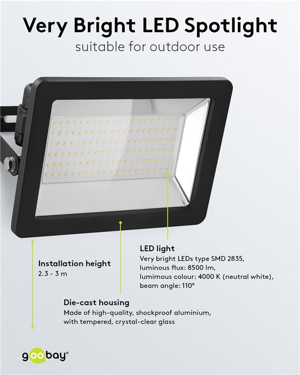 • Sehr heller und funktioneller LED-Strahler in kompaktem Design zur Beleuchtung von Hallen, Gärten, Park- und Sportplätzen