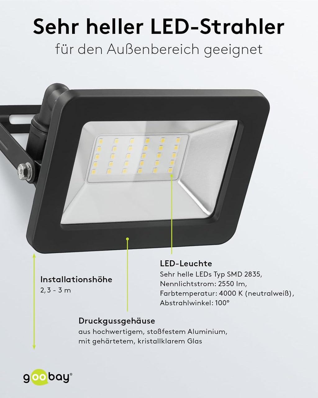 • Sehr heller und funktioneller LED-Strahler in kompaktem Design für Hauseingänge, Garagen, Carports, Fassaden und Zugangswege