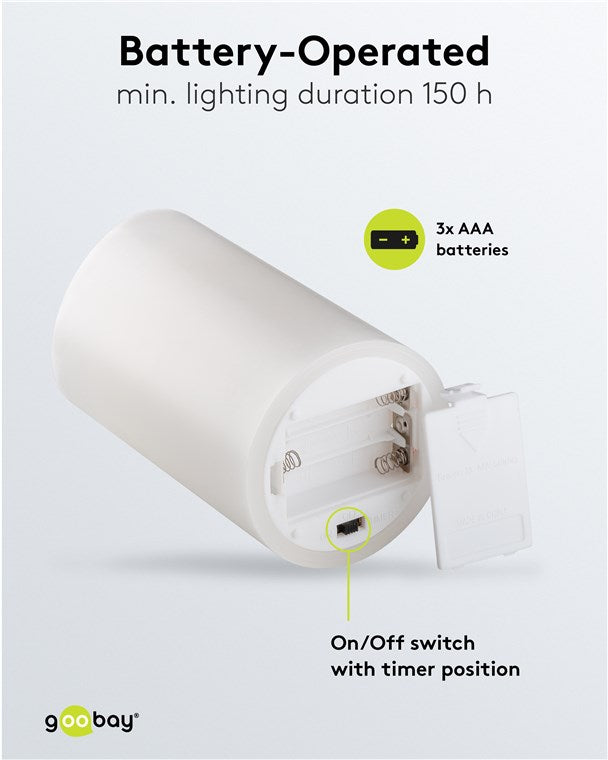 • mit Timerfunktion und 3D-Flammenkegel, batteriebetrieben, warmweiß (2700 K)