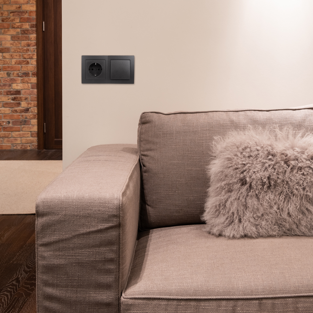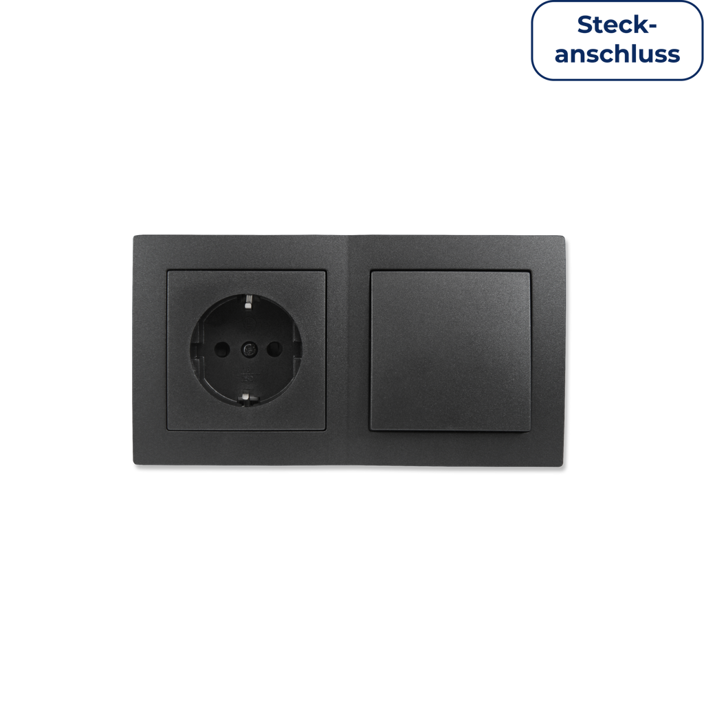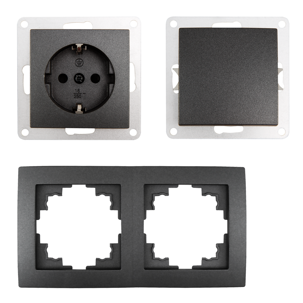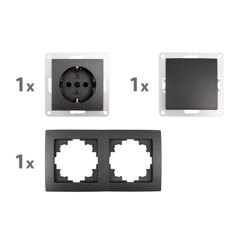McPower Steckdosen Set | Flair | Tür 2-Fach Profi | 3-teilig, Wandsteckdose mit Lichtschalter, Klemmanschluss dunkelgrau anthrazit, matt