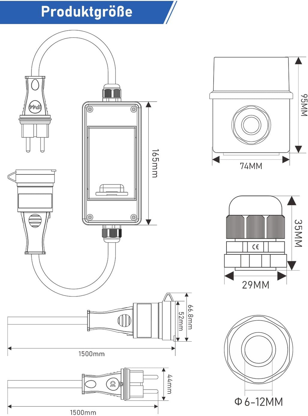 • Schuko Stecker: einer schweren Länge 3m Gummischlauch-Leitung geliefert und ist mit einem Schutzkontaktstecker und einer Schutzkontaktkupplung ausgestattet, was eine einfache und sichere Installation ermöglicht.