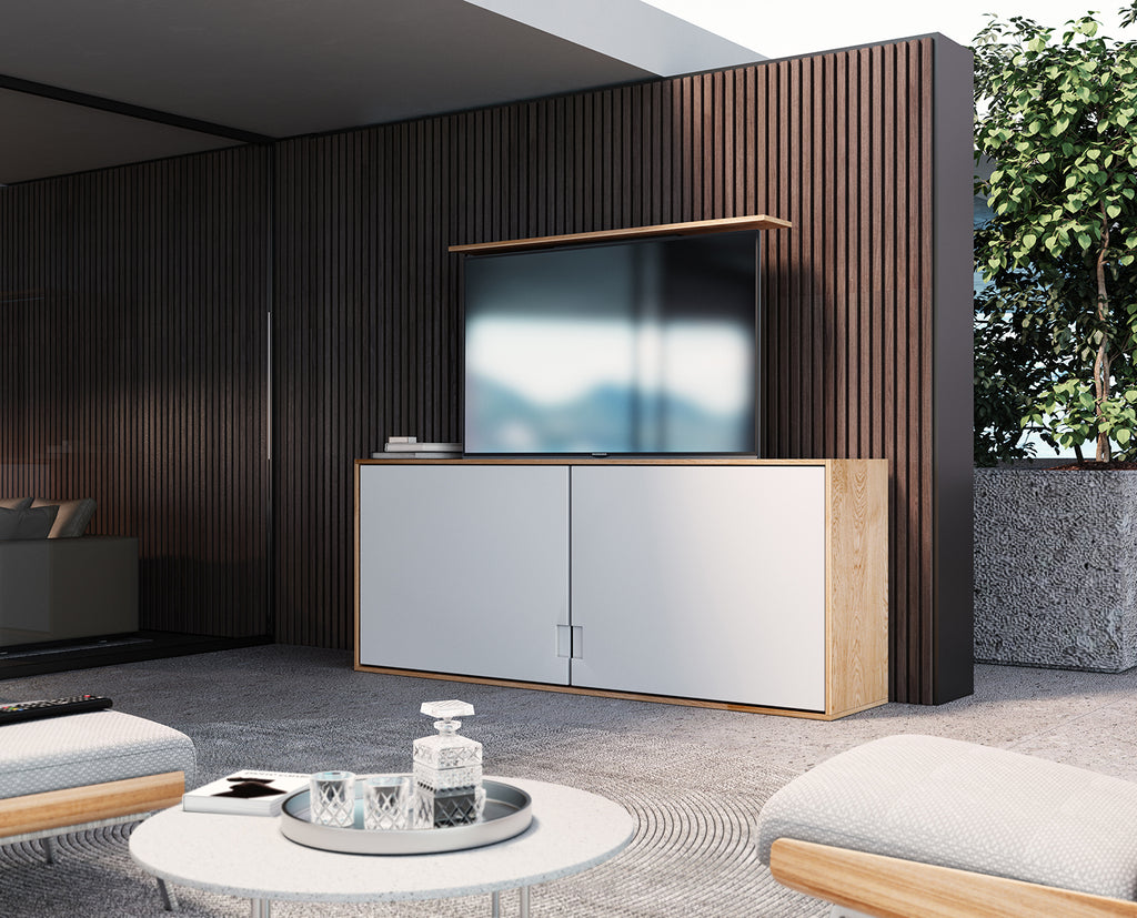 Machen Sie Ihren Fernseher zu einem stylischen Mittelpunkt in Ihrem Home Entertainment. Der TV Lift lässt sich perfekt in ihr bestehendes Smart Home Konzept integrieren. Lassen Sie mit nur einem Befehl den Fernseher aus dem Schrank fahren, einschalten und das Licht dimmen. Auch die Popkornmaschine kann in diesem Automatisierungsprozess mit einbezogen werden, so dass Sie sich nur noch mit dem frischen Popcorn auf das Sofa setzen müssen.