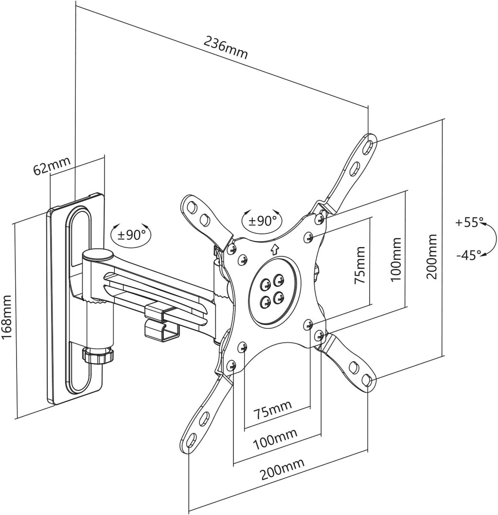 Die Wandhalterung für Fernseher kann flexibel geneigt und geschwenkt werden. Der Fernseher lässt sich dadurch perfekt ausrichten und Sie haben immer beste Sicht, ganz egal ob Sie von der Sitzecke oder dem Schlafbereich aus fernsehen möchten.