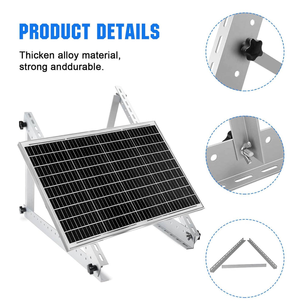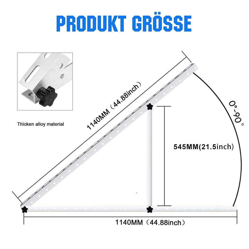 • 【ZUVERLÄSSIG UND MIT VIELEN FUNKTIONEN】Die Halterung ist verwindungssteif, korrosionsfest und ist durch seine hohe Stabilität und die präzise Fertigung ideal für die sichere Befestigung von Photovoltaik und Solar Modulen. Der Neigungswinkel ist werkzeuglos von 0-90°einstellbar.