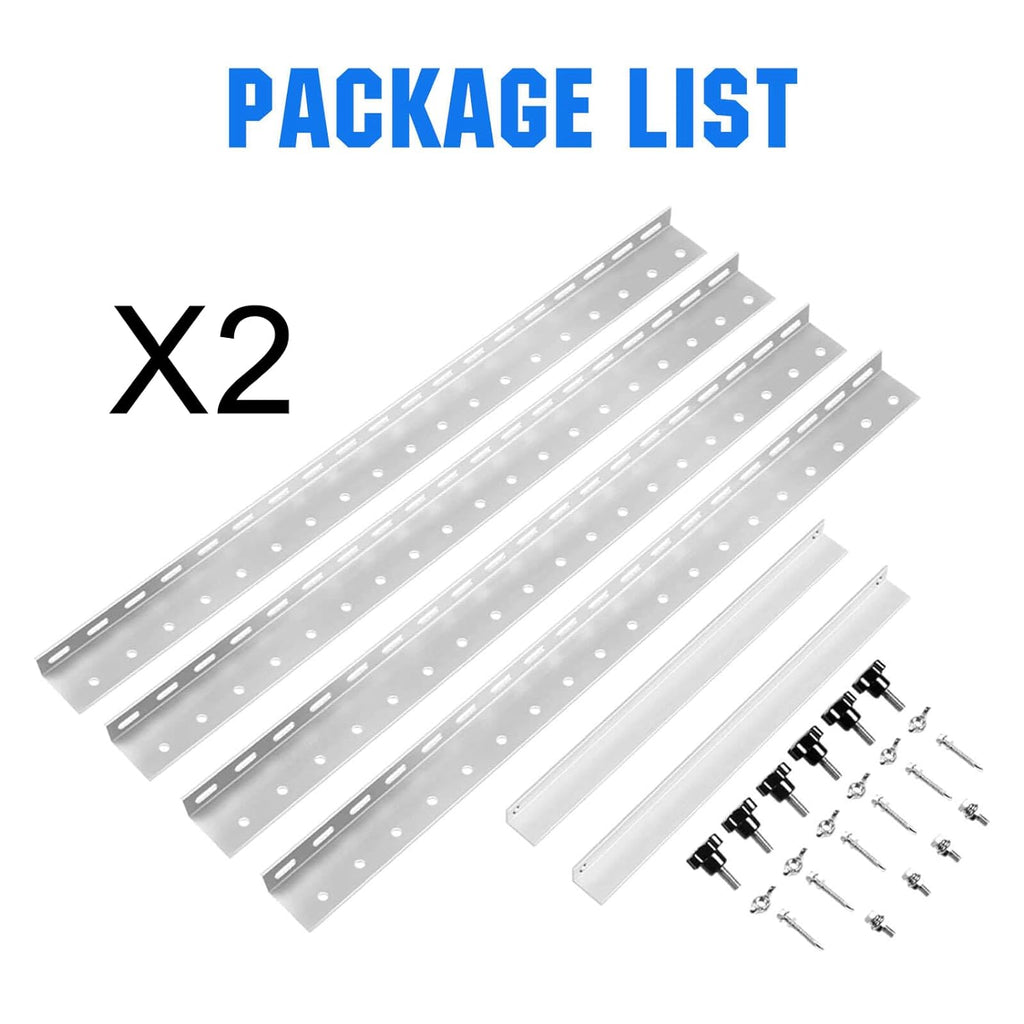 • 【KOMPLETTER LIEFERUMFANG】Alles enthalten zur sofortigen Montage dank 8x Montageschienen 114 cm, 4x Schienen zur Winkeleinstellung, 12x Rändelschrauben + Flügelmuttern, 12x M6 Sechskant Schrauben + Muttern, 12x Selbstschneide Schrauben