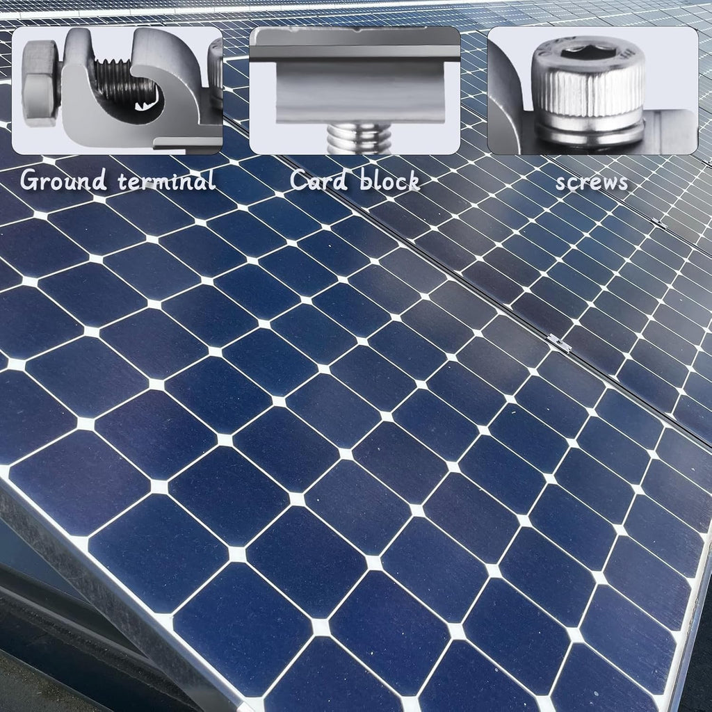 • Praktisches Design: Aluminiumschienen Solarpanel Erdungsclip schützt die Photovoltaikanlage vor schlechtem Wetter, verbessert die Stabilität der Photovoltaikanlage, sorgt für einen ordnungsgemäßen Potenzialausgleich und sorgt für eine stabile und zuverlässige elektrische Leistung.