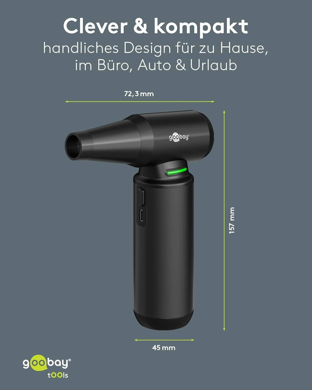 • Nachhaltig unterwegs: Mit dem aufladbaren Akku ist das Gebläse deutlich nachhaltiger als Druckluftspray aus der Dose und dadurch besonders praktisch für unterwegs