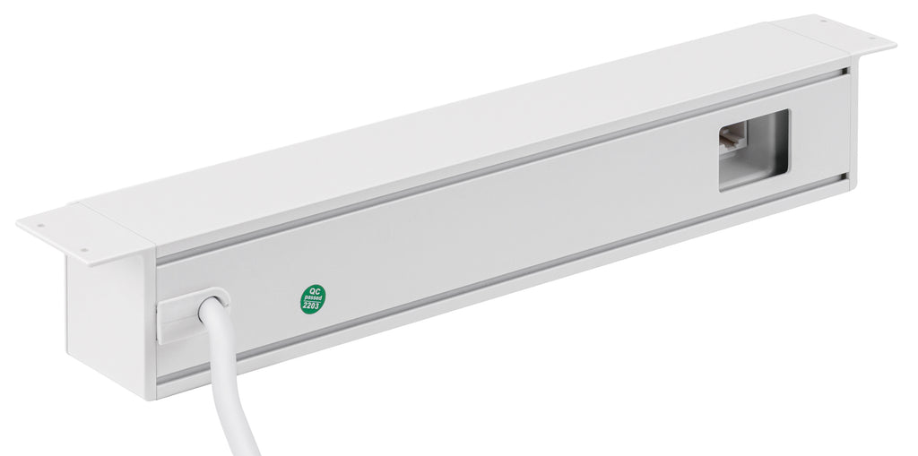 Mit Hilfe der Schrauben lässt sich die Leiste an der Wand, Sockelleiste, Schreibtisch oder an anderen Möbeln befestigen.