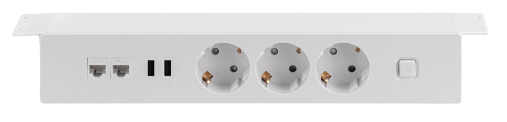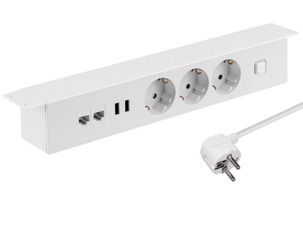 Tischsteckdose NV64L 3-Fach Schutzkontakt mit 2X USB und 2X LAN Anschluss, Mehrfachsteckdose für Zuhause Anschraubbar, Knopf zum EIN- und Ausschalten, Steckdosenleiste mit 1,8m Kabel